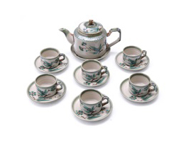 Bộ ấm chén - màu trắng xanh - men lam cổ