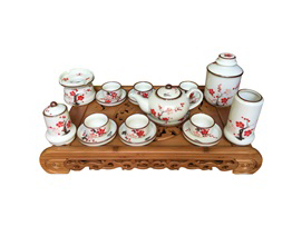 Bộ ấm chén vẽ hoa đào đầy đủ phụ kiện và khay