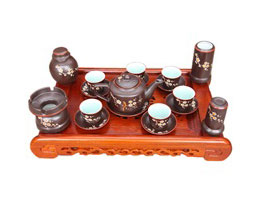 Bộ ấm chén tử sa ngấn nâu đỏ và khay