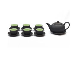 Bộ ấm chén gốm dáng thắt eo - lòng chén xanh