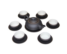 Bộ ấm chén gốm vai vuông - men đen - chỉ bạc