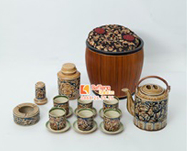 Bộ ấm chén vuông - men rạn cổ bọc đồng