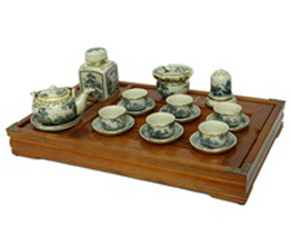Bộ ấm chén màu trắng xanh-men lam cổ
