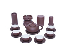 Bộ ấm chén tử sa nâu chỉ đỏ - lòng trắng